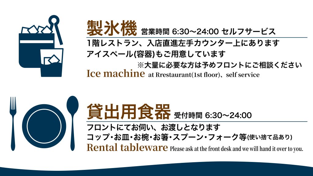 製氷機・貸出用食器をご利用ください | ホテルなみ 公式ページ